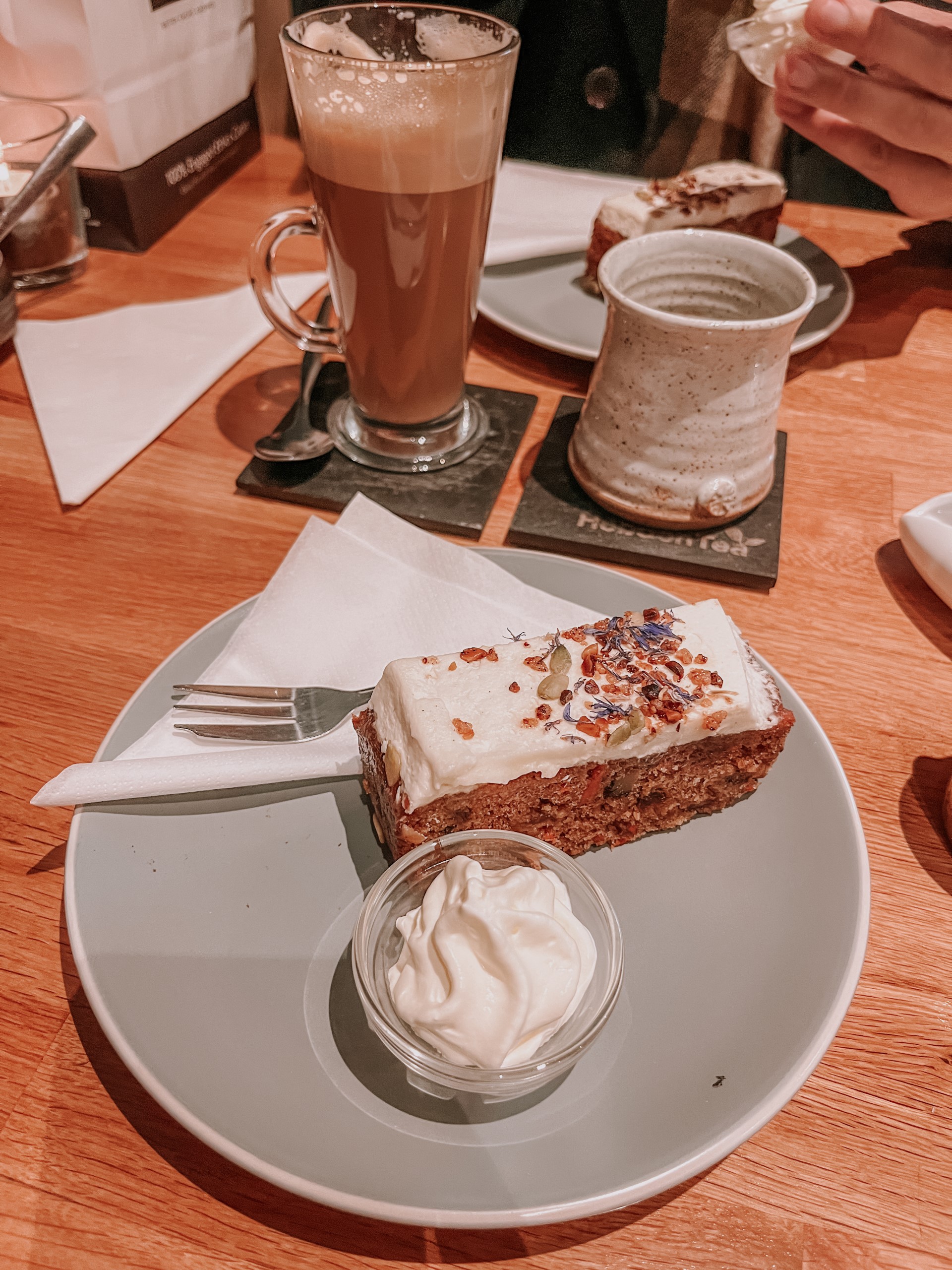 Carl got a latte as he’s not a fan of herbal teas but I tried out one of their teas (I’m not sure which flavour it was now) and it was lovely. We both had a slice of carrot cake which was definitely one of the best carrot cakes I’ve had. A wonderful place for tea lovers!
