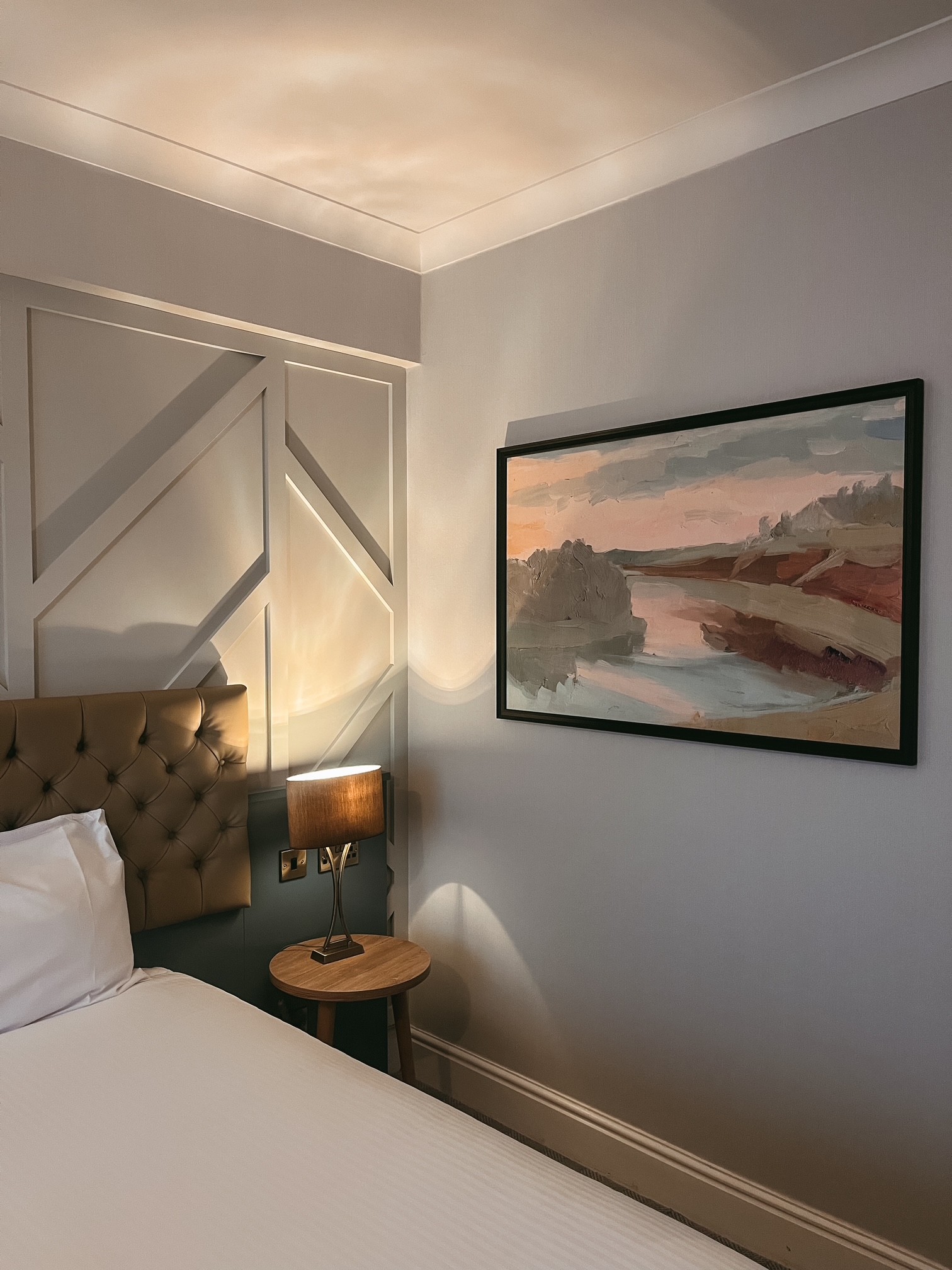 I liked the cool and calming colour scheme in our bedroom – especially the panelling on the wall behind the bed. One thing we would both agree it could use though is Netflix on the TV. Our room had a large high quality TV but the only thing available was the TV channels and there’s never much good on these days.