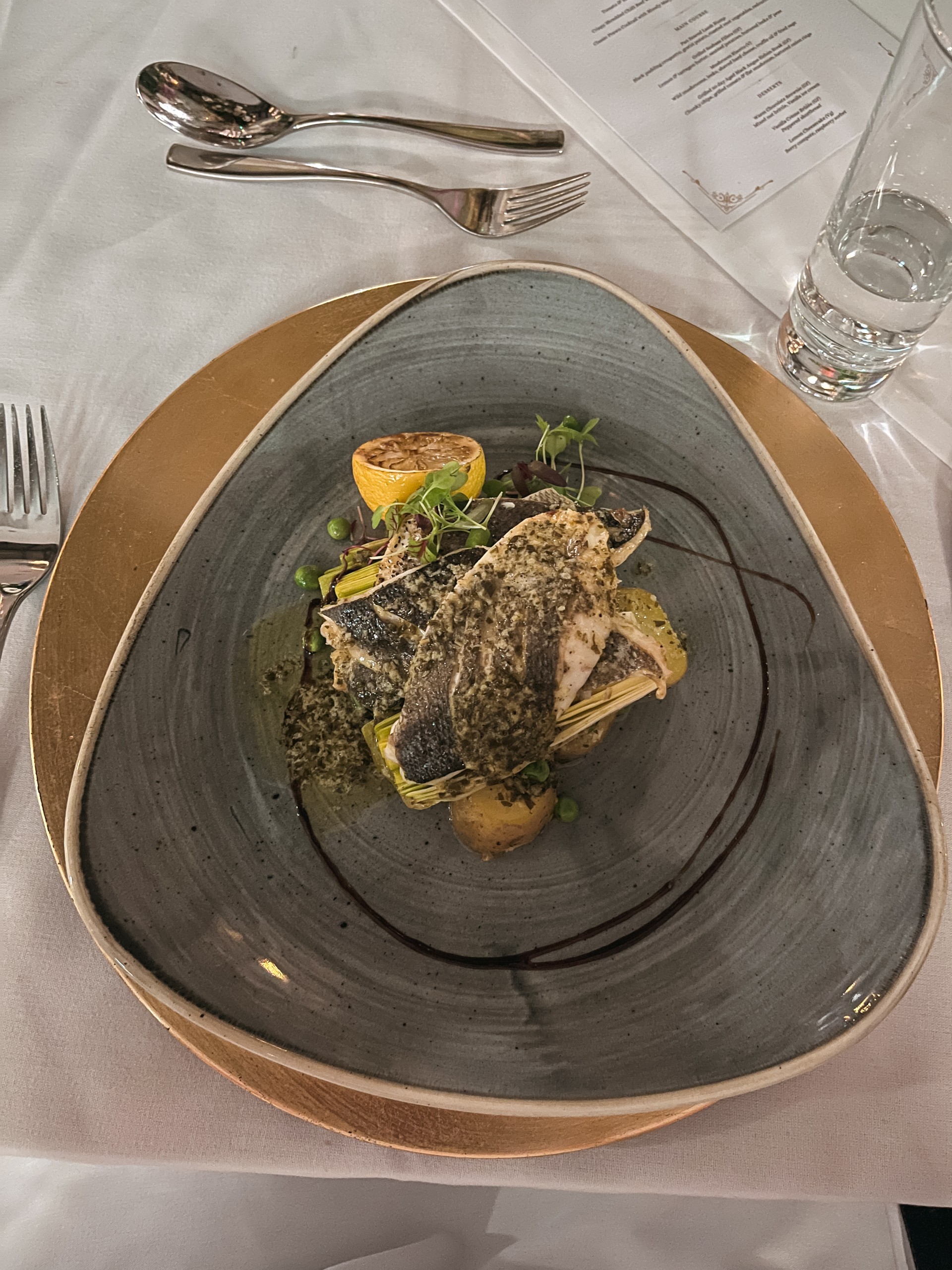 Grilled seabass fillets: I chose the seabass for main which is unsurprising as I’m a big fish lover and this dish was so full of flavour. The leeks were cooked beautifully and the lemon and tarragon butter… say no more.