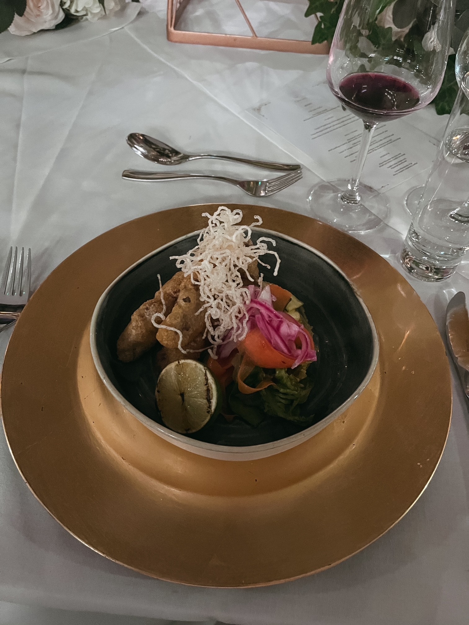 The room was set up beautifully and the service from the waiters was exceptional. We were also treated to live music from Ron Sanders which was amazing, he’s exceptionally talented and it was a joy to listen to him play.